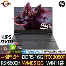 HP 빅터스 16인치 블랙 게이밍노트북 Victus16-e1087AX_UP1 / 라이젠5 탑재 RTX3050Ti / 고성능 노트북 / 게이밍 노트북 /, Victus 16-e1087AX, WIN11HOME, 16GB, 512GB