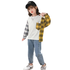 베비포 여아용 체크 긴팔티 청바지 상하복 세트 TX6