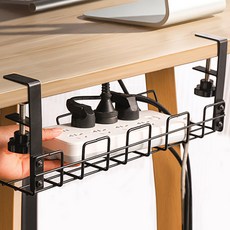 웰빙마켓 무타공 멀티탭 선반 정리함, 블랙, 1개
